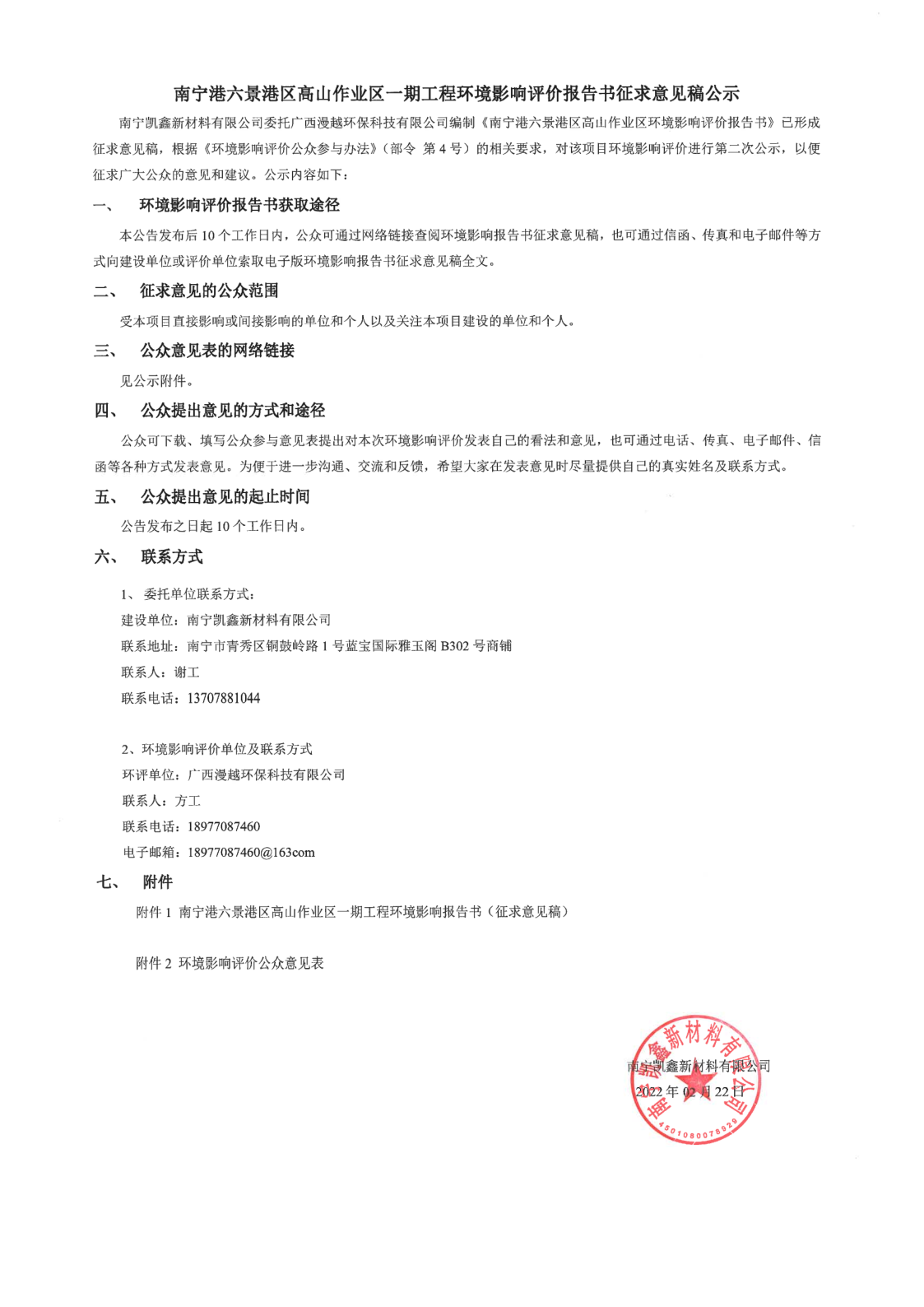 南寧港六景港區(qū)高山作業(yè)區(qū)一期工程環(huán)境影響評(píng)價(jià)報(bào)告書征求意見稿公示