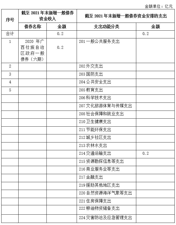 截至2021年末發(fā)行的新增地方政府一般債券資金收支情況表