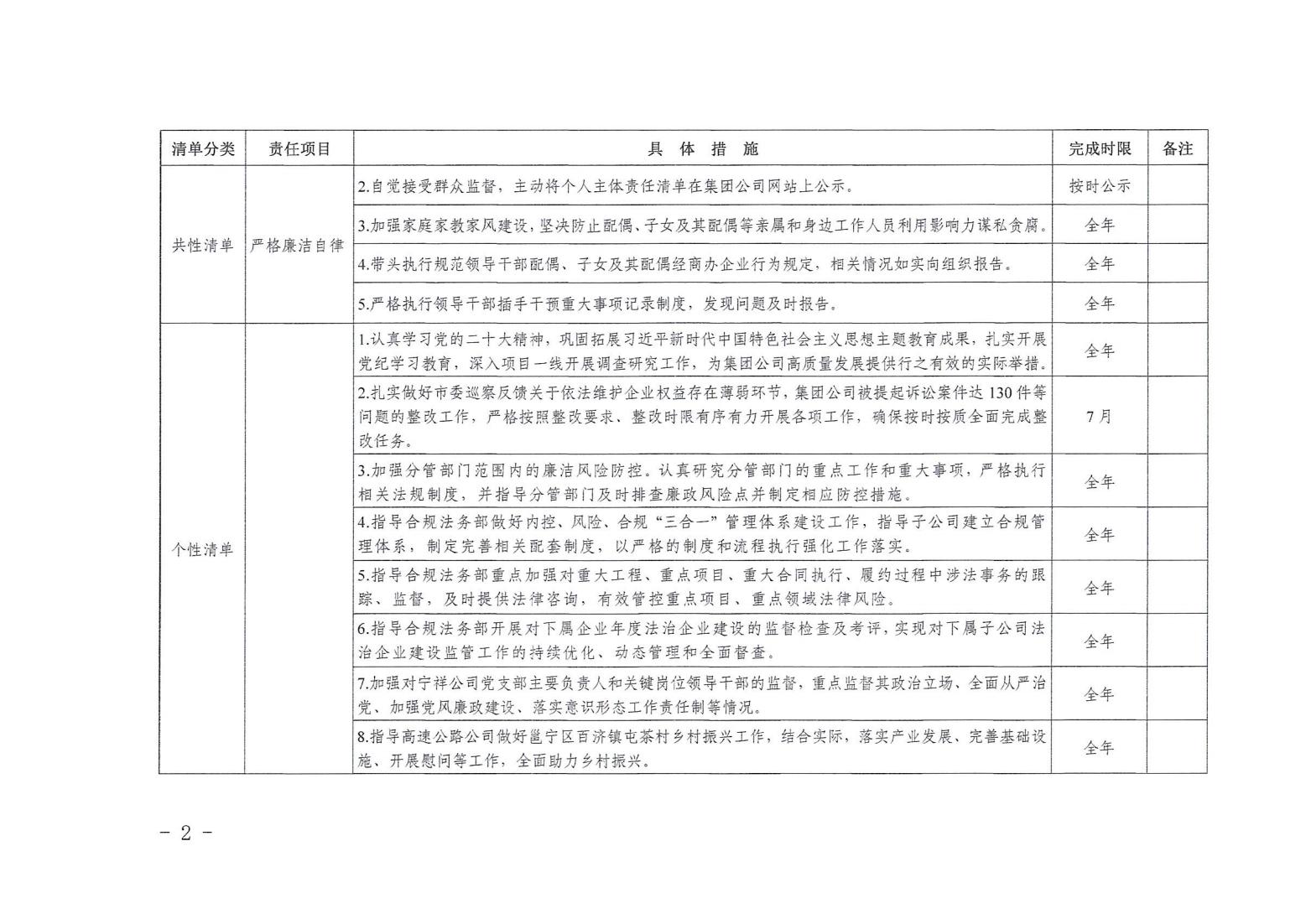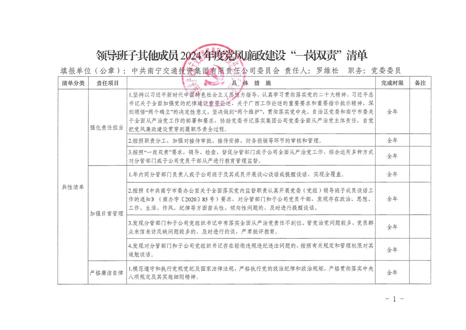 領(lǐng)導班子其他成員2024年度黨風廉政建設(shè)“一崗雙責”清單(五)