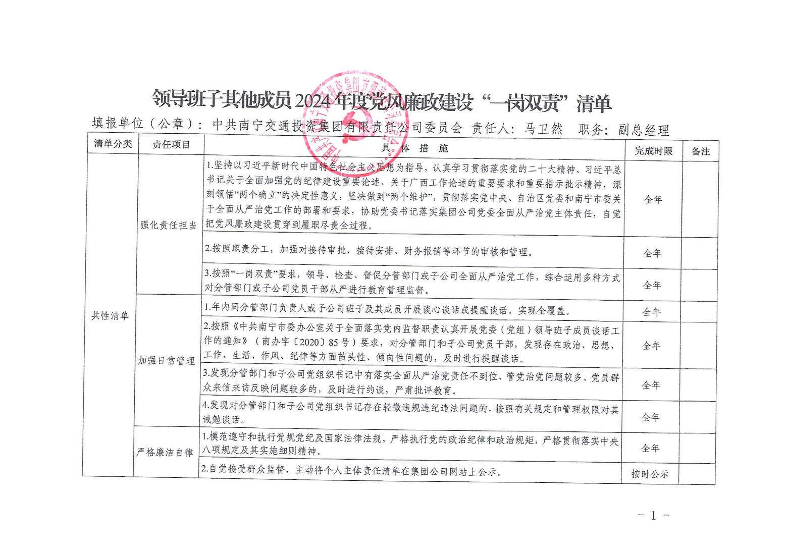 領(lǐng)導(dǎo)班子其他成員2024年度黨風(fēng)廉政建設(shè)“一崗雙責(zé)”清單(五)