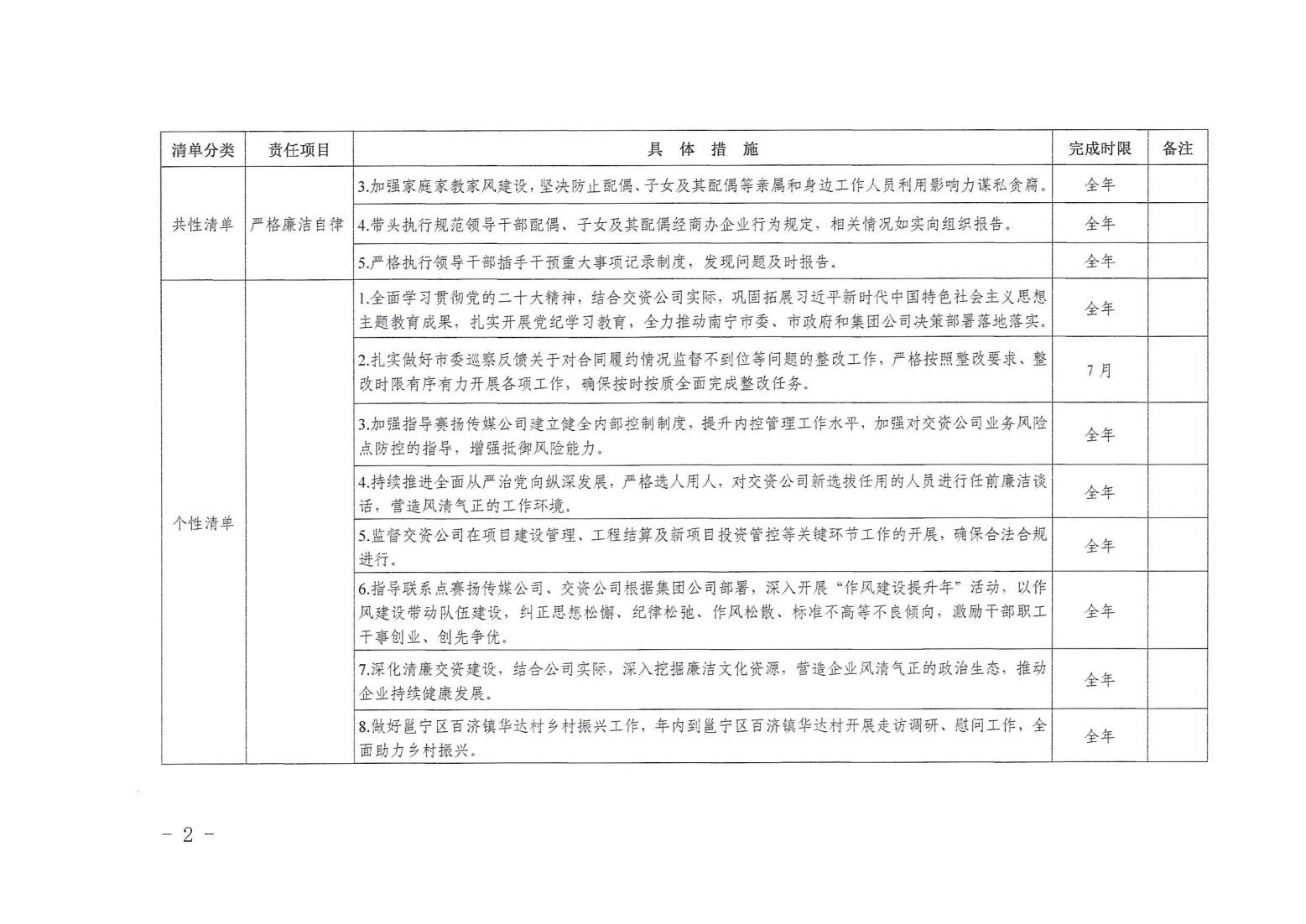 領(lǐng)導(dǎo)班子其他成員2024年度黨風(fēng)廉政建設(shè)“一崗雙責(zé)”清單(七)
