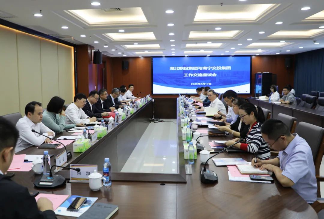 4月17日,湖北聯(lián)投集團(tuán)黨委副書記、總經(jīng)理劉光輝帶隊(duì)到南寧交投集團(tuán)開展工作座談。南寧交投集團(tuán)黨委書記、董事長曹壯,黨委副書記、總經(jīng)理謝江,副總經(jīng)理馬衛(wèi)然、周宏,總會(huì)計(jì)師秦勝友參加座談。