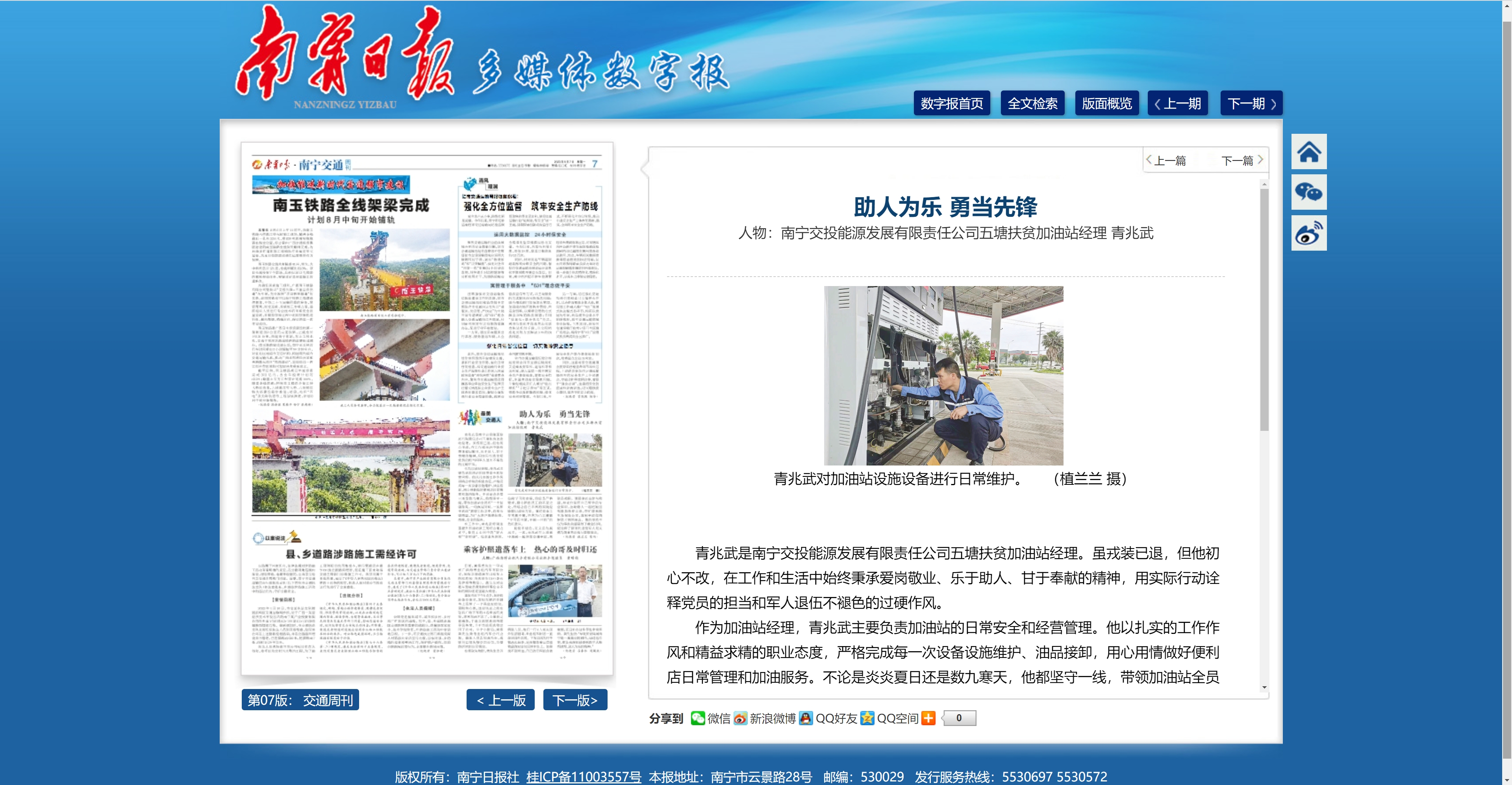 助人為樂(lè) 勇當(dāng)先鋒-南寧交投能源發(fā)展有限責(zé)任公司五塘扶貧加油站經(jīng)理 青兆武